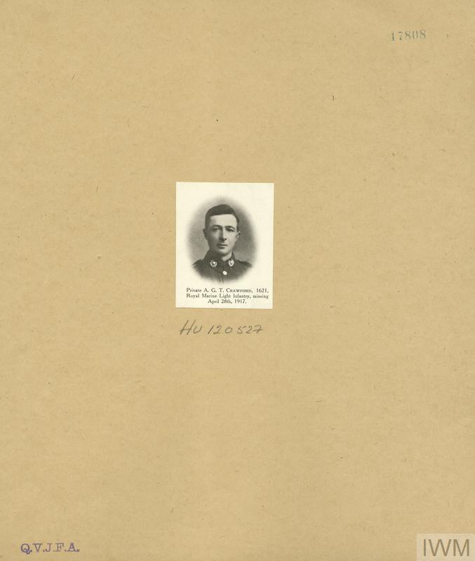 Private Alfred George Thomas Crawford PO/1621(S). Unit: 1st Royal Marine Batallion, Royal Naval Division, Royal Marine Light Infantry. Death: 28 April 1917 Missing in action Western Front. Son of George and Mabel Crawford, of Goose St., Beckington, Bath.