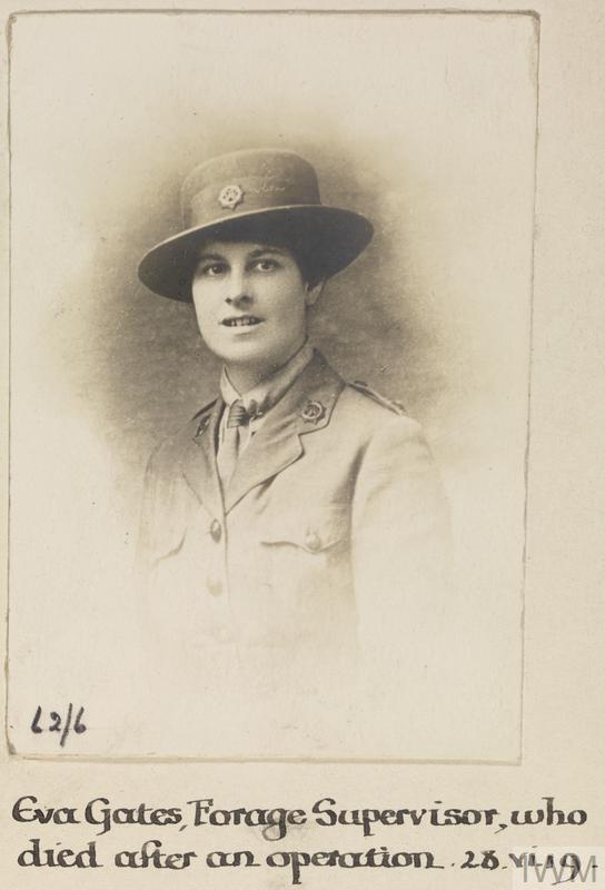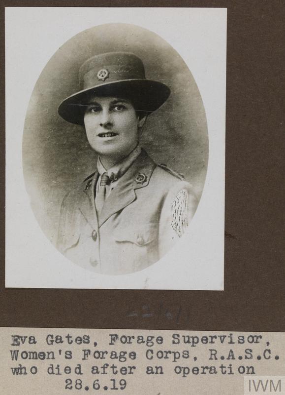 Eva Gates, Women's Forage Corps: Royal Army Service Corps. Died after an operation 28 June 1919.