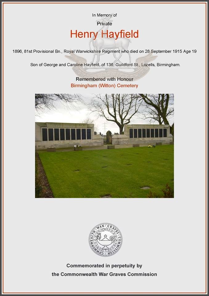 Private Henry Hayfield 1896, Royal Warwickshire Regiment