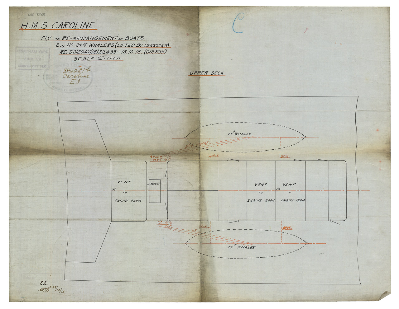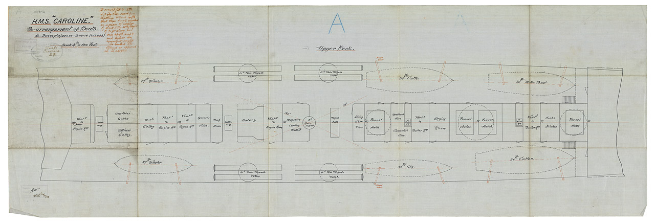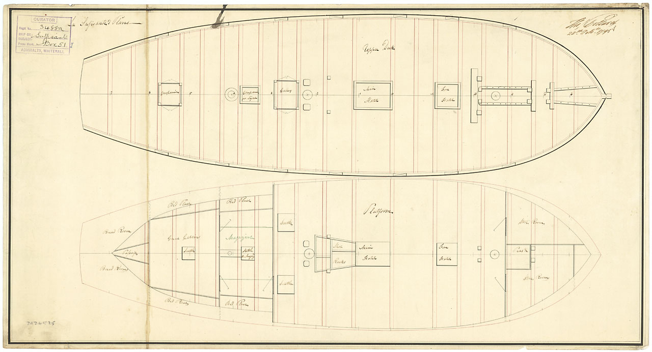 Suffisante (1795). No Scale. Plan showing the upper deck, and fore & aft platforms for Suffisante (1795), a captured French Brig, as taken off prior to being fitted as a 16-gun Brig Sloop.