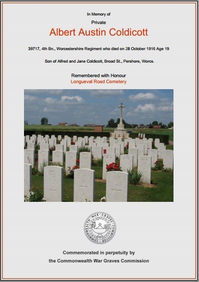 Private Albert Austin Coldicott 39717, Worcestershire Regiment