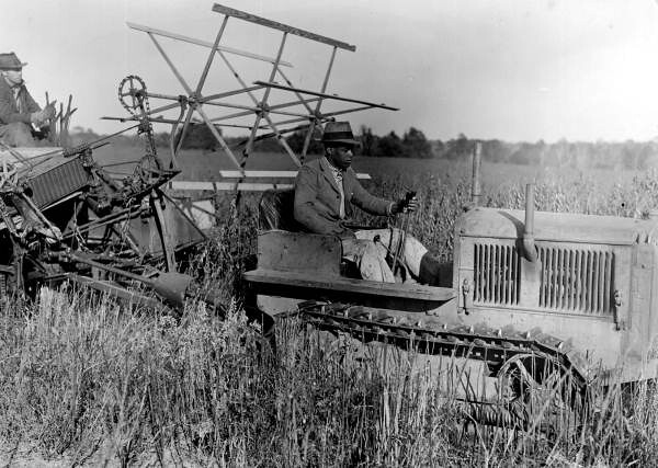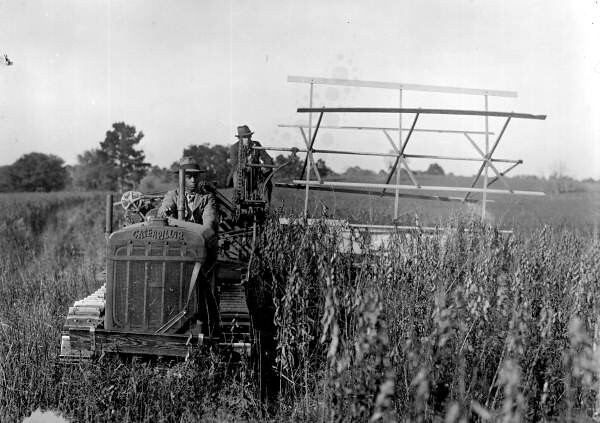 Cutting and binding crotalaria spectabilis for seed: Monticello, Florida