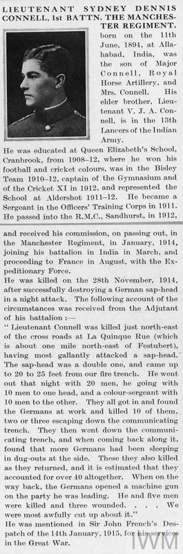 Lieutenant Sydney Dennis Connell , 1st Battalion Manchester Regiment