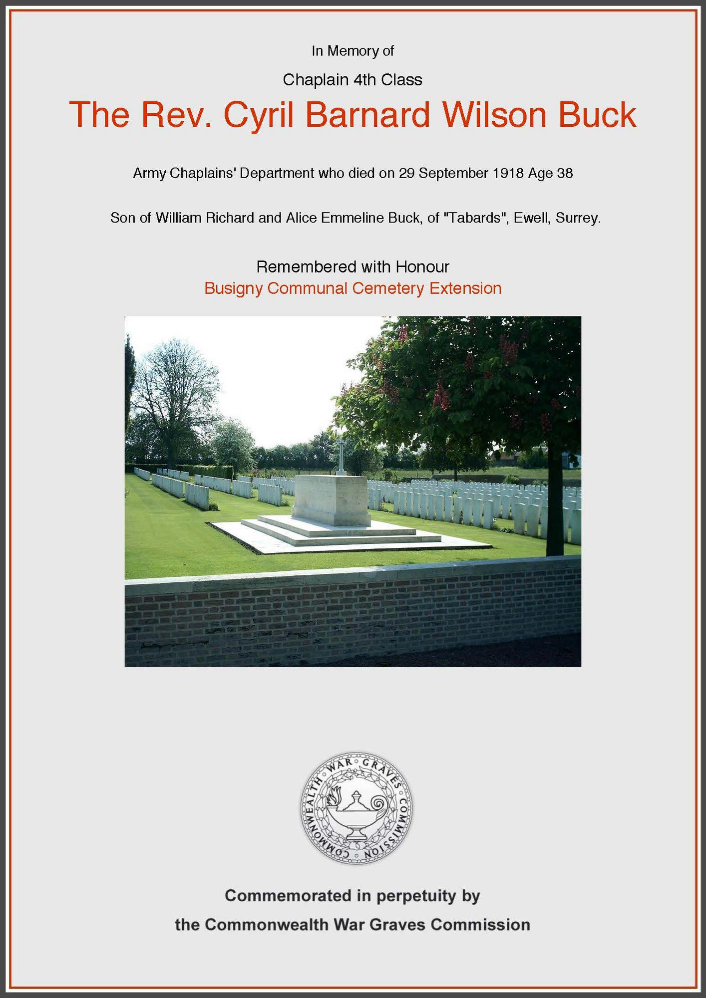 Chaplain The Reverend Cyril Bernard Wilson Buck , 1/5th Leicestershire Regiment