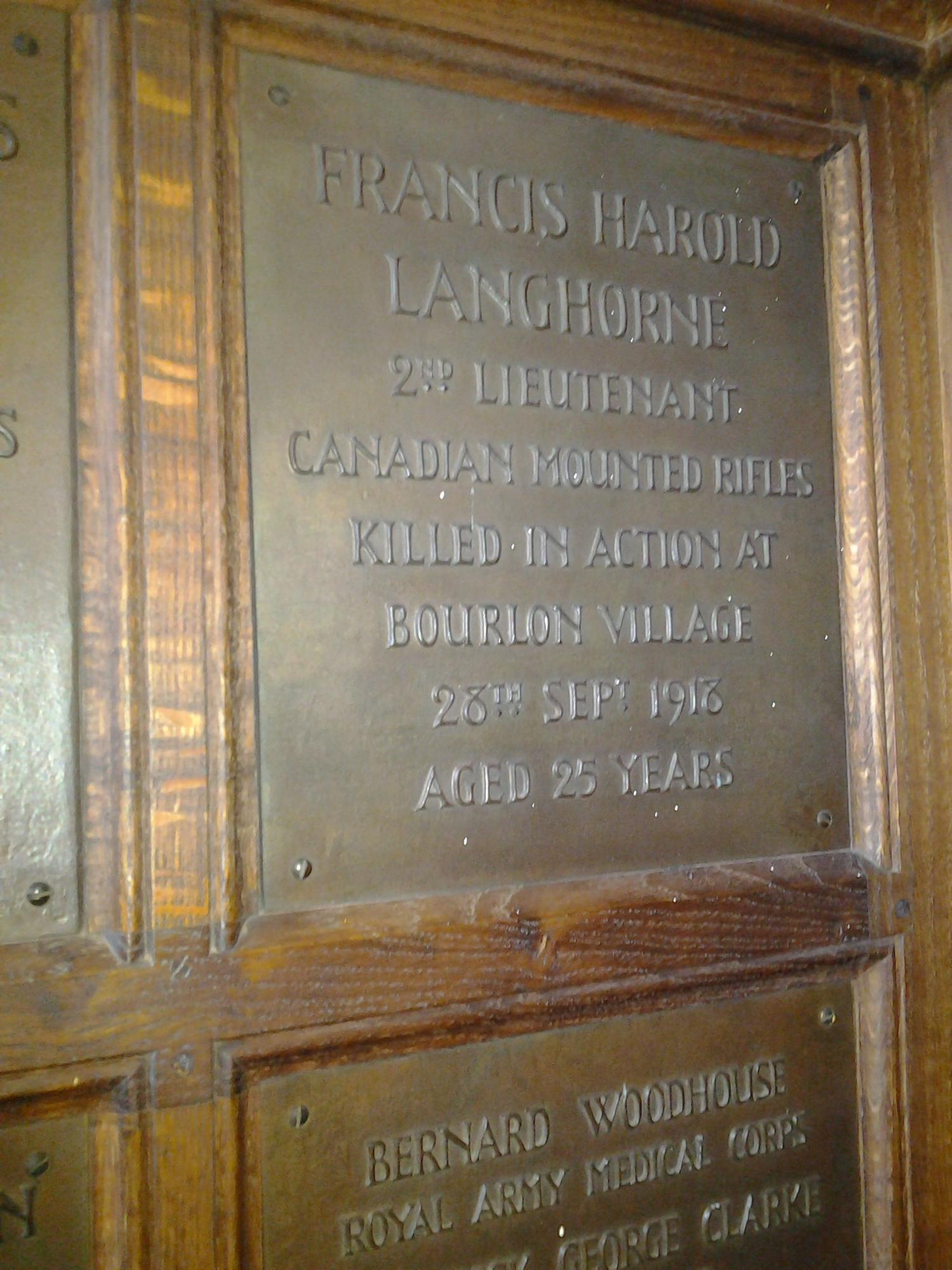 Lieutenant Francis Harold Langhorne , 2nd Canadian Mounted Rifles Battalion
