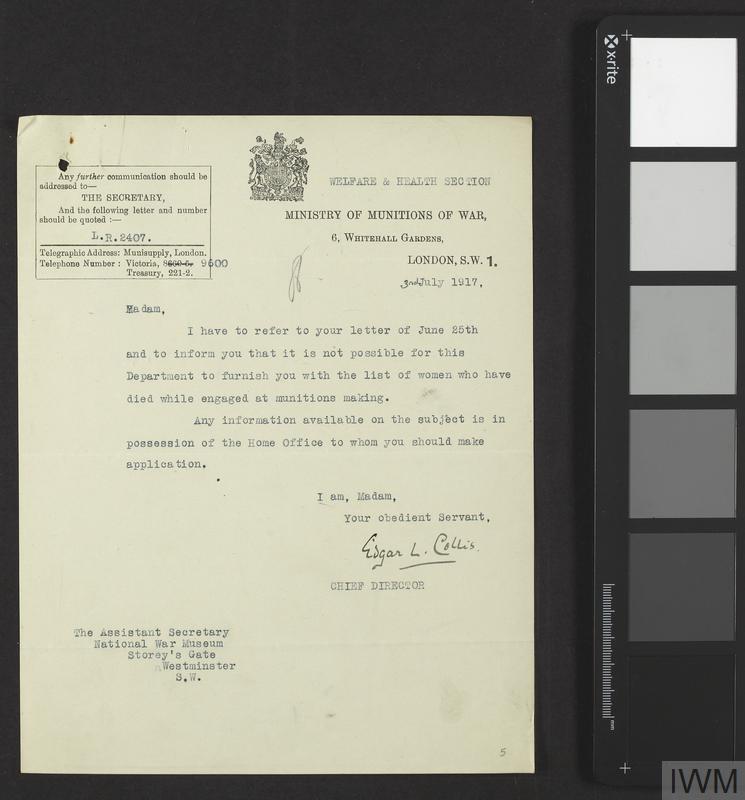 Munitions Worker Ada Frances Curtis , Ministry of Munitions