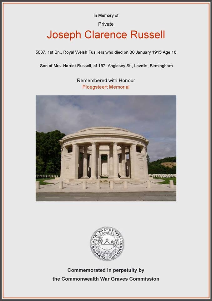 Private Joseph Clarence Russell 5087, Royal Welsh Fusiliers