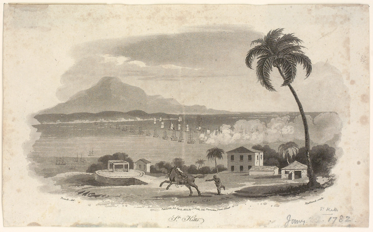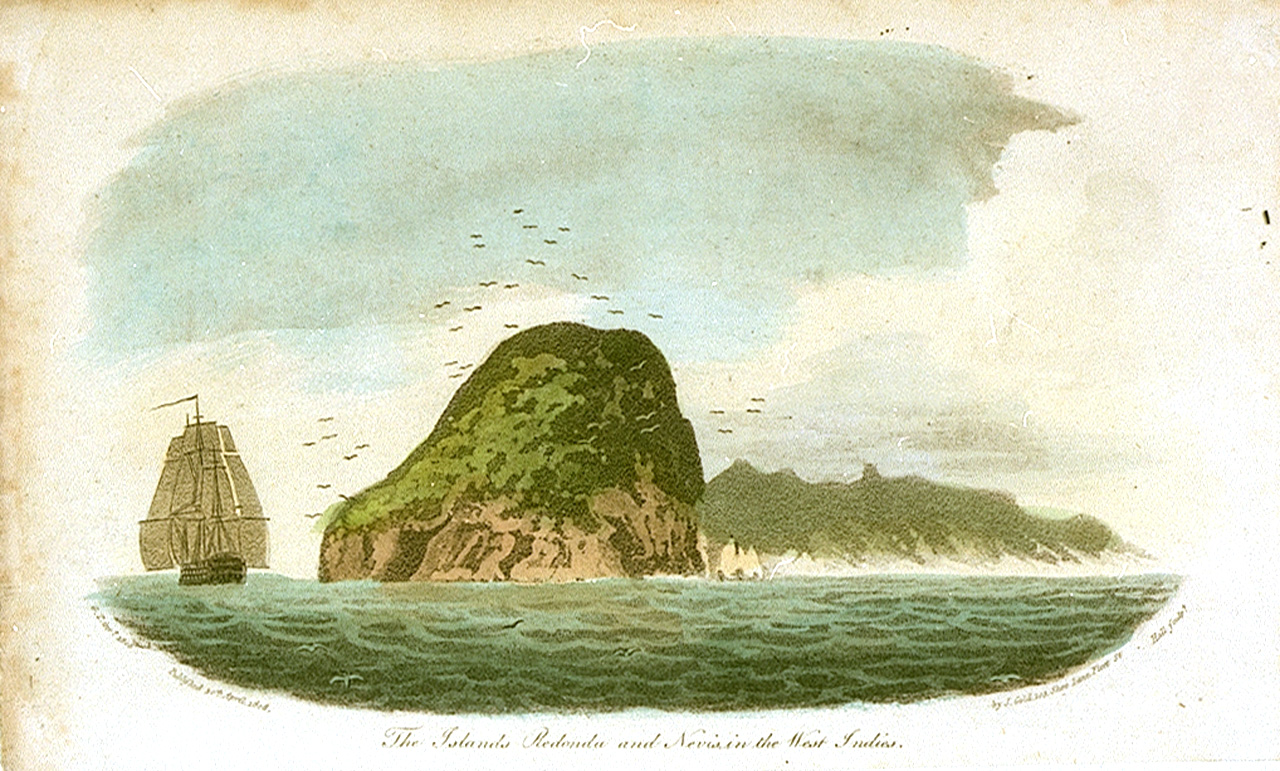 The Islands Redonda and Nevis in the West Indies. Vignette. From the 'Naval Chronicle', vol, 19, after p.308, plate 355. The print was published uncoloured.