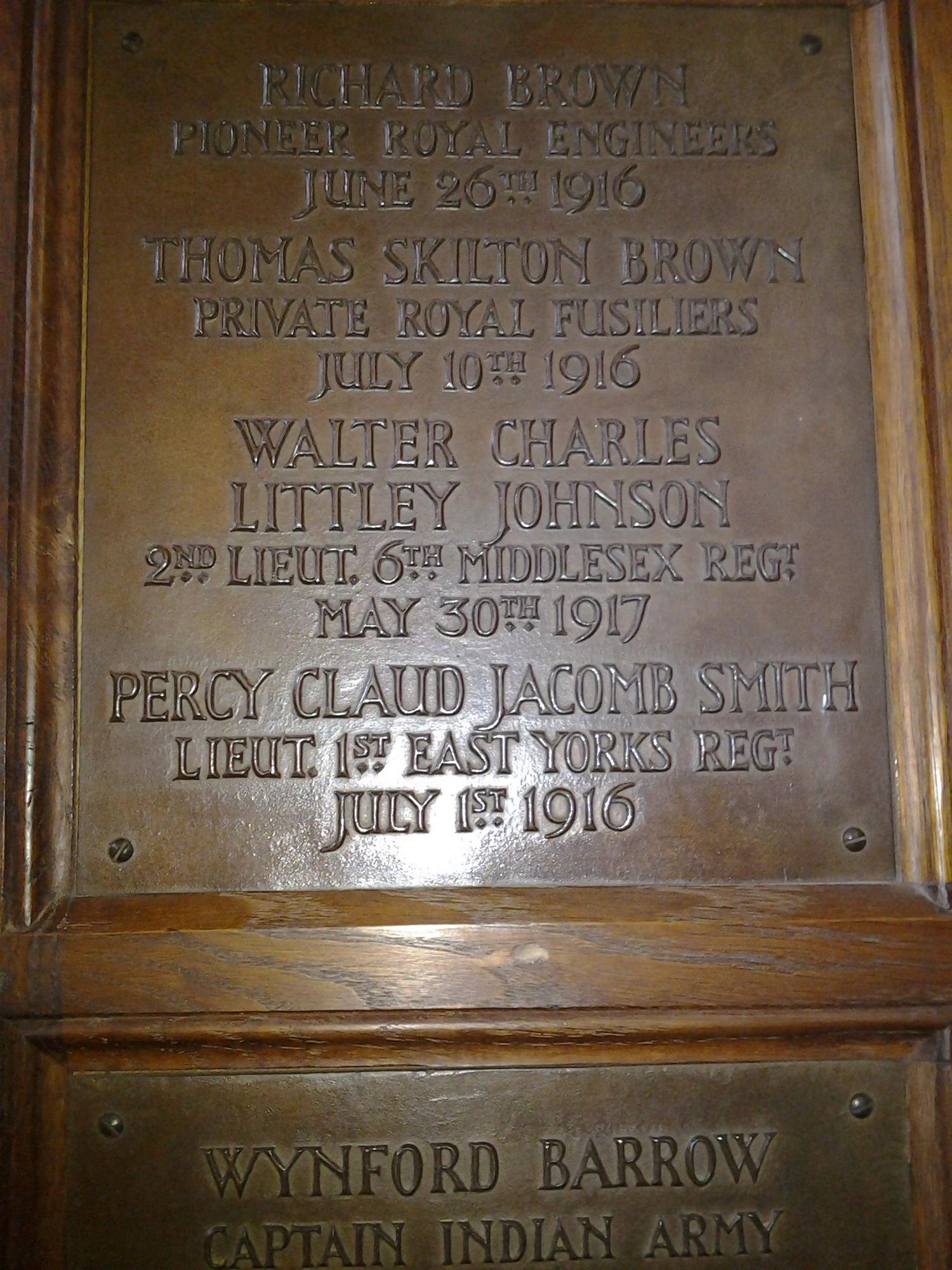 Second Lieutenant Walter Charles Littley Johnson PS/2868, 6th Battalion, Middlesex Regiment