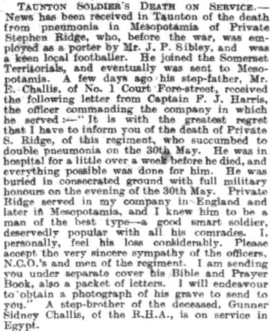 Private William Leonard Stevens 9195, Gloucestershire Regiment