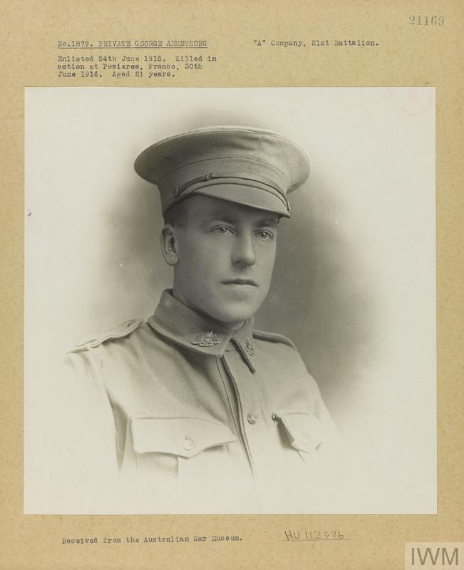 Private George Armstrong 1879. Unit: A Company, 21st Battalion, Australian Imperial Force. Death: 30 June 1916 Pozieres Western Front