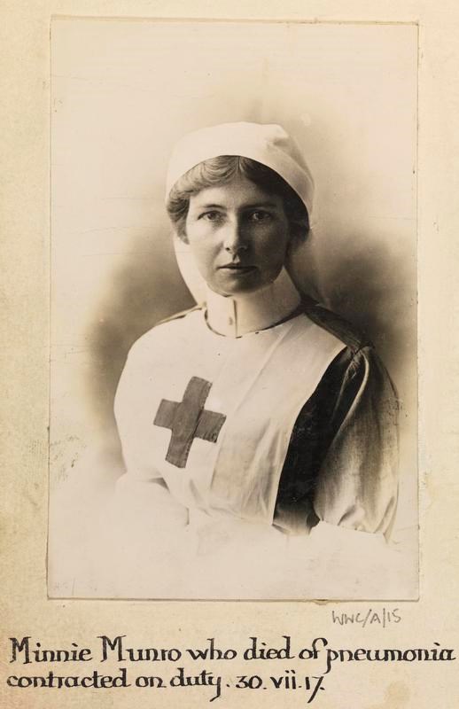 Probationer Miss Minnie Munro, Voluntary Aid Detachments. Died of pneumonia contracted on duty 30 July 1917.