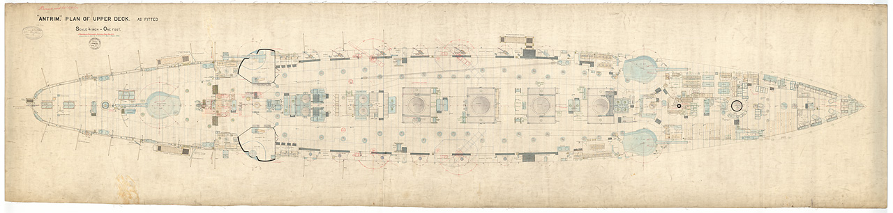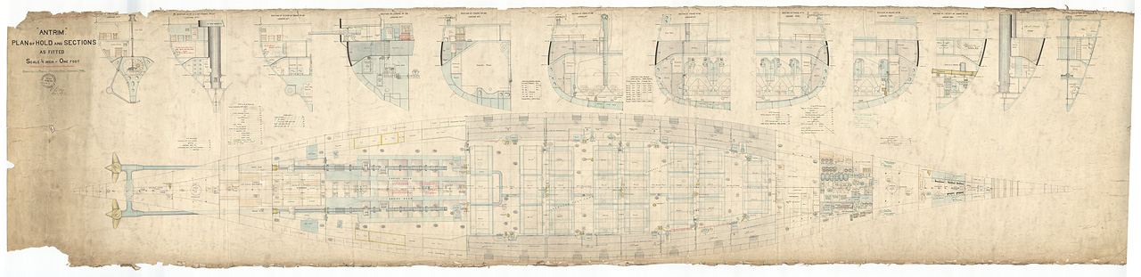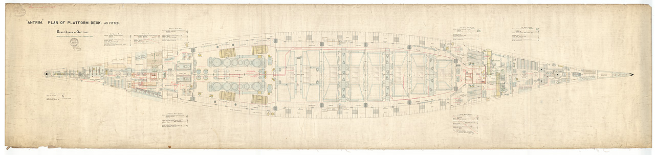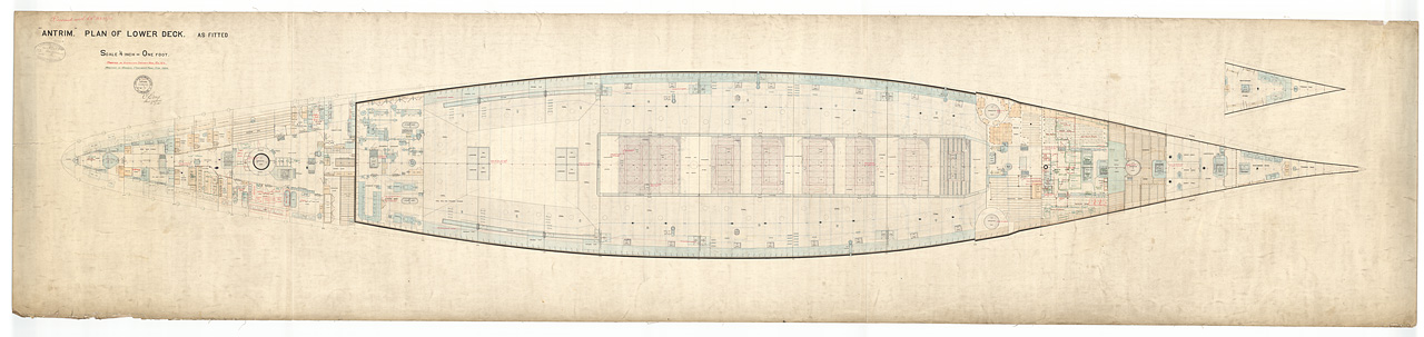 . Inboard profile plan, as fitted in 1903, modifications from 1918/1920