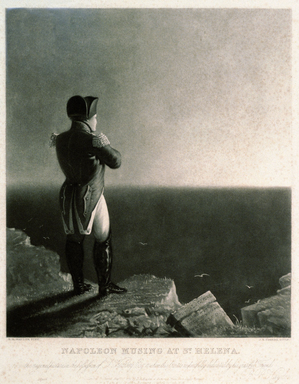 Napoleon musing at St Helena, from the original picture in the possession of J Kearsey Esq to whom this print is respectfully dedicated by his grateful Friend. Technique includes etching.