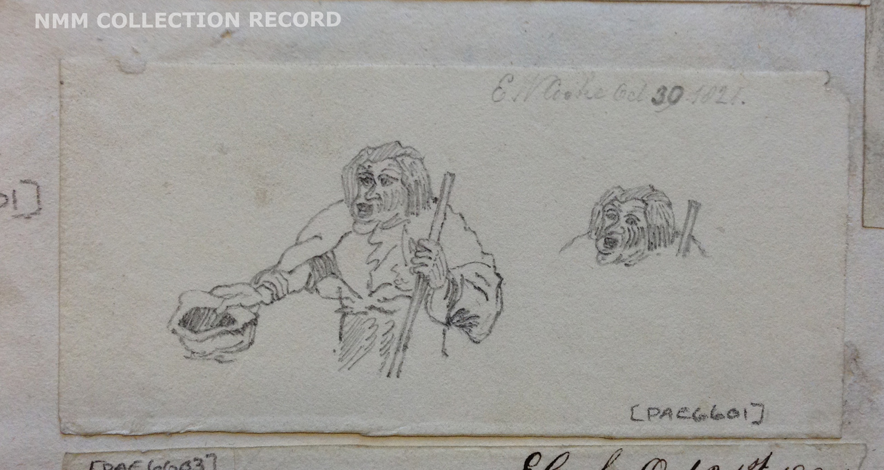 Study of a singing beggar. Mounted with PAE6598-PAE6600, PAE6602-PAE6604.