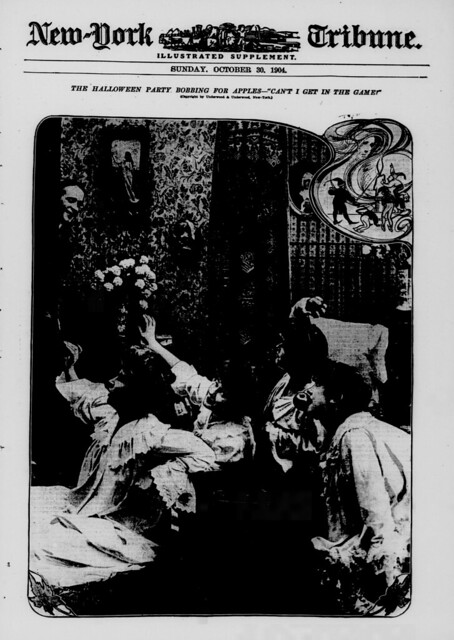 The Halloween Party. Bobbing for apples-"Can't I get in the game?" (LOC)