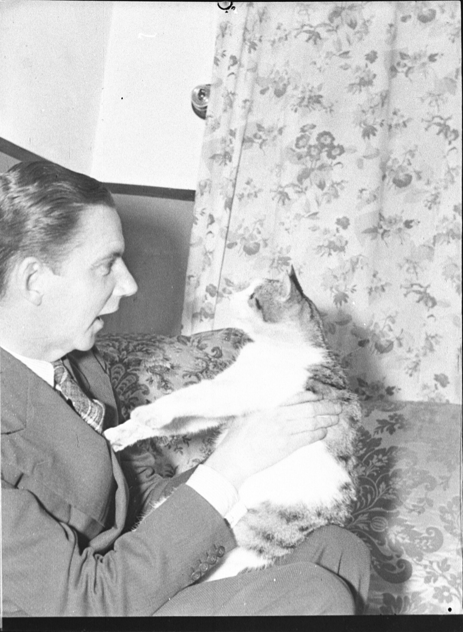 Tommy Jay and cat (taken for J.C. Williamson), 30 October 1941