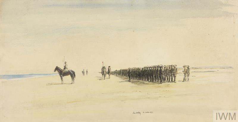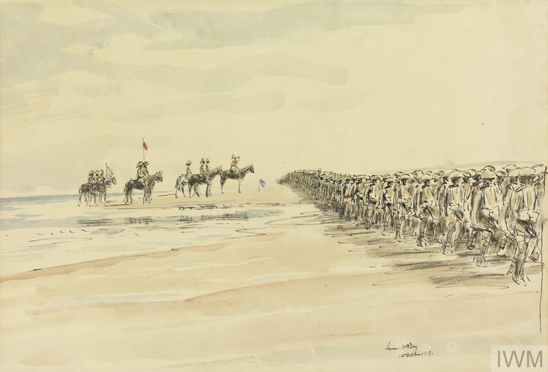 An Inspection of Scottish Troops at Sheikh Shabassi : the March Past. On the 30th October, 1917, men who were to participate in the attack on Gaza were inspected by the Divisional General