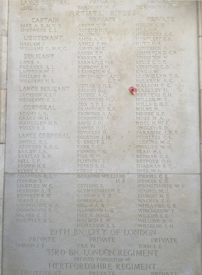Private Edward K Wheawill 763219. Unit: 1st/28th Battalion, London Regiment (Artists Rifles). Death: 30 October 1917 Missing in Action Western Front