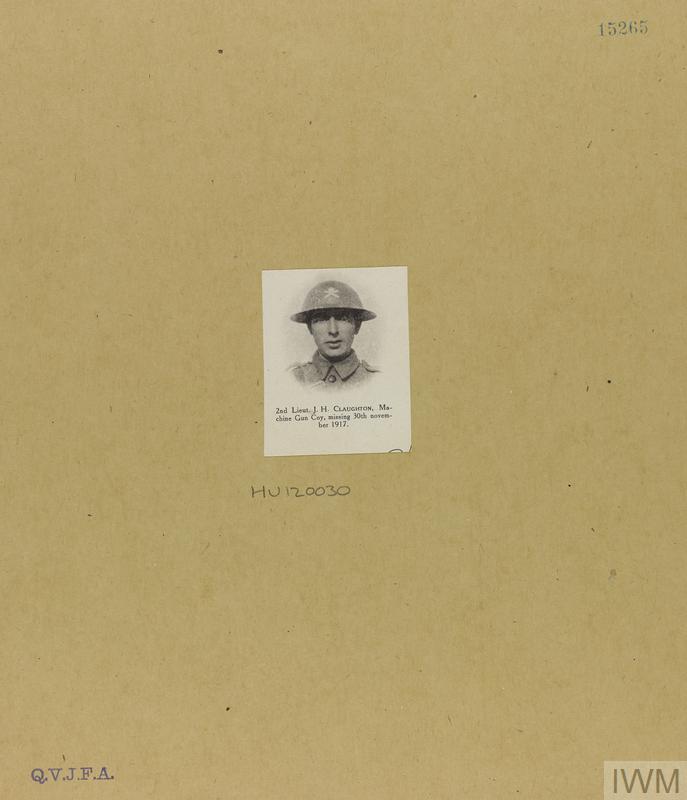 Second Lieutenant John Harold Claughton. Unit: 35th Company, Machine Gun Company (Infantry). Death: 30 November 1917 Missing in action Western Front