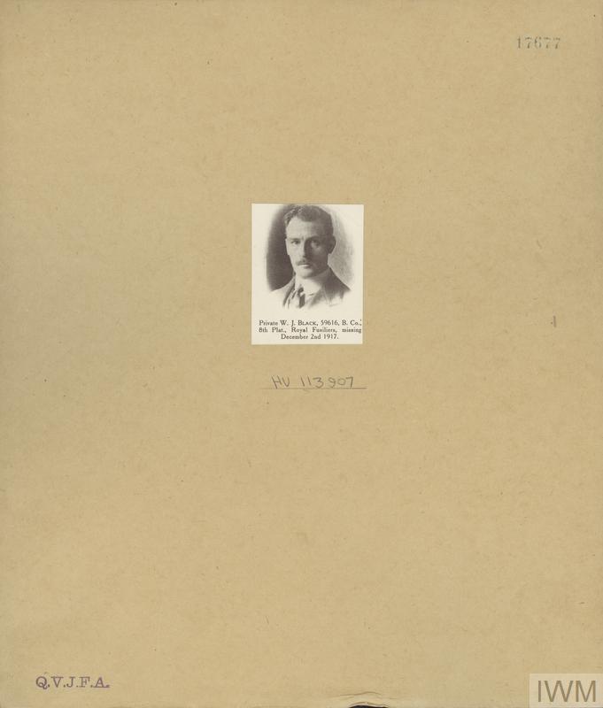 Private William John Black 59616. Unit: 9th Platoon, B Company, 9th Battalion, Royal Fusiliers. Death: 30 November 1917 Western Front