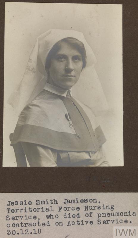 Jessie Smith Jamieson, Territorial Force Nursing Service. Died of pneumonia contracted on active service 30 December 1918.