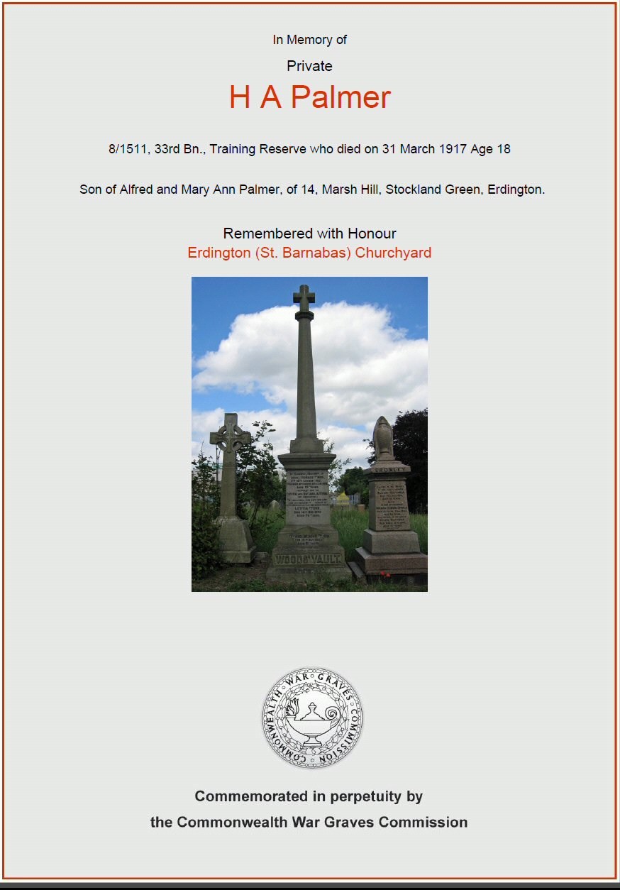 Private Edward Ralph Cooke 9281. Unit: 2nd Battalion, Honourable Artillery Company. Death: 31 March 1917 Killed in action Western Front