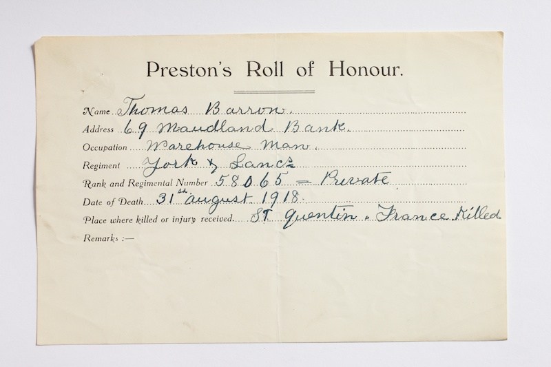Private Thomas Barron 58065, York and Lancaster Regiment