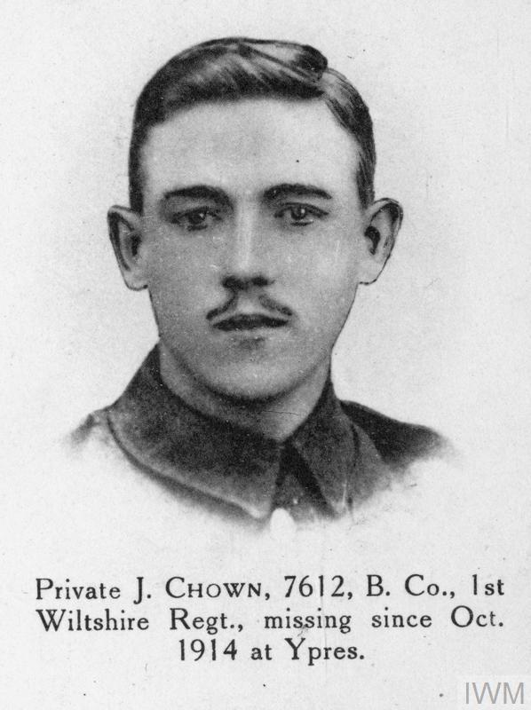 Private John Chown 7612. Unit: B Company, 1st Battalion, Wiltshire Regiment. Death: 31 October 1914 Missing in action Aged 25years Ypres,Western Front