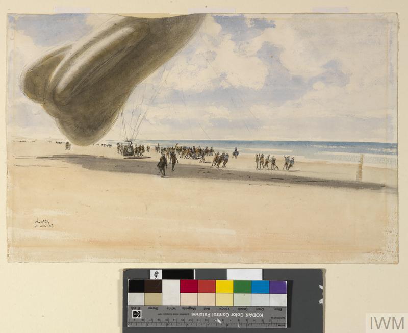 A Balloon Ascending, Gaza : one of the 'sausages' going up to spot for the guns of the monitors