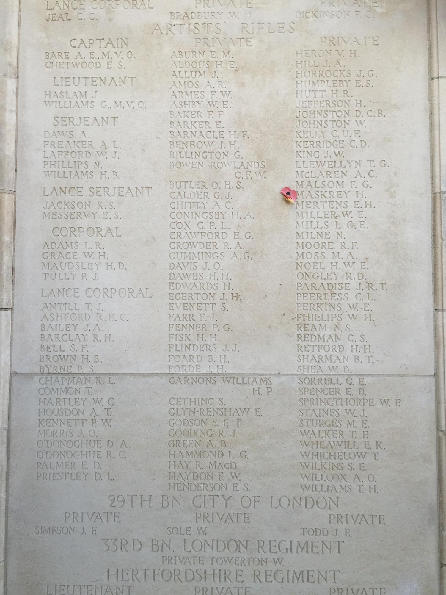 Private David Edward Matthews 535274, 2/15 London Regiment (Prince of Wales' Own Civil Service Rifles)