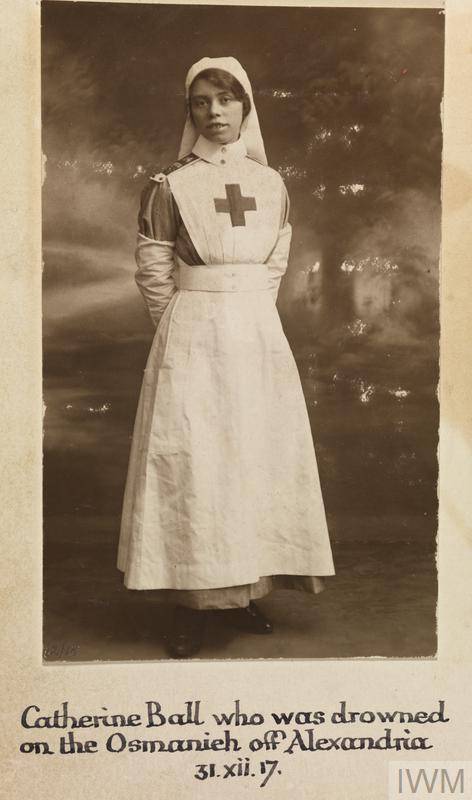 Sister Catherine Ball, Voluntary Aid Detachments. Drowned in the Mediterranean when the Osmanieh was torpedoed 31 December 1917.