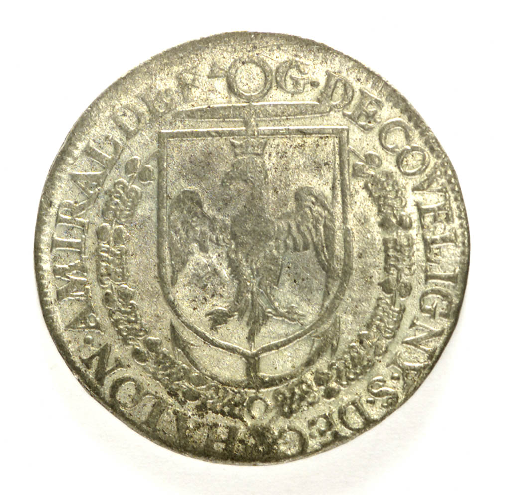 Counter commemorating Admiral Gaspard de Coligny (1516-1572). Counter commemorating Admiral Gaspard de Coligny (1516-1572). Obverse: The arms of Admiral de Coligny upon an anchor, surrounded by the collar of the Order of St Michael. Legend: 'G . DE .