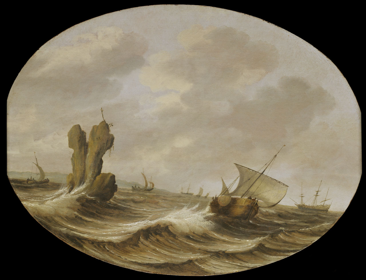 Dutch Yachts Racing. In this unusually large painting from the 1630s, van Eertvelt depicts a dramatic scene of Dutch yachts sailing in a stiff breeze off a northern European coast. The yachts are shown racing in a stiff breeze and, in the foreground, the