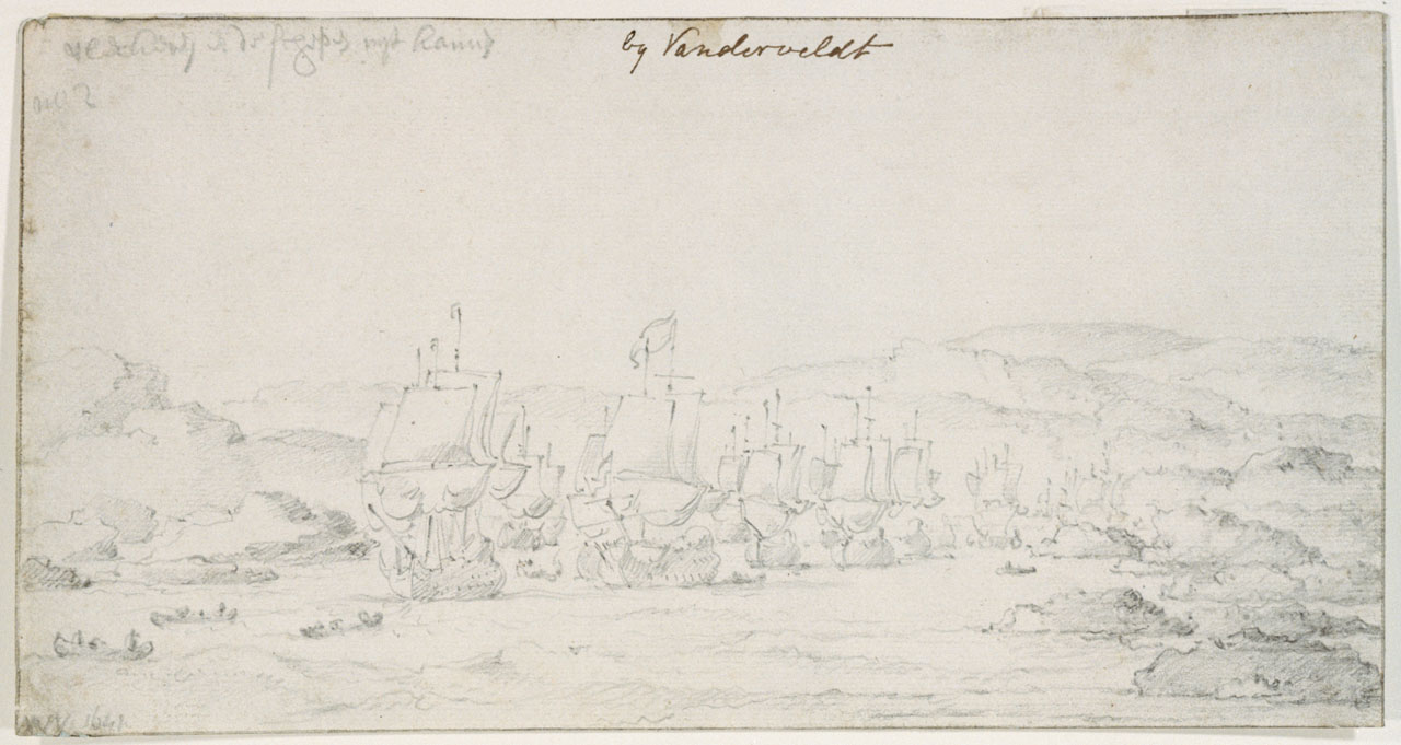 Navios de Cortes desagregados y echados a pique por orden fuya. Technique includes mixed method.; Pag.61.
