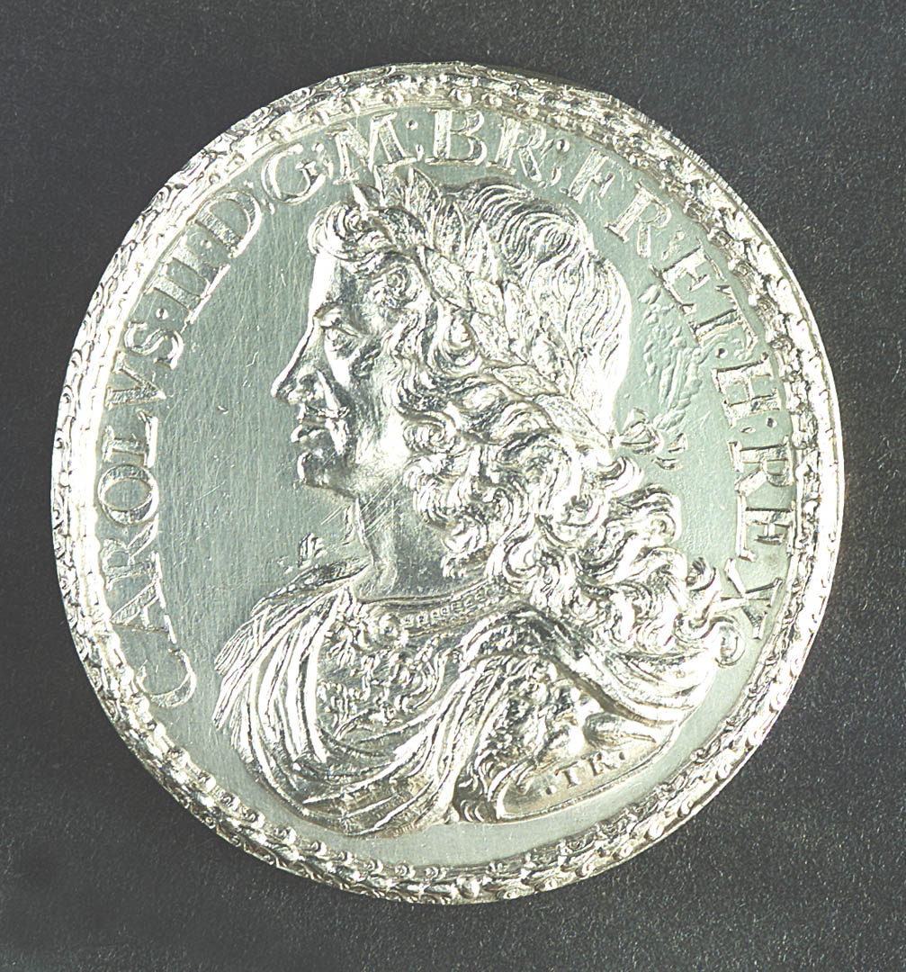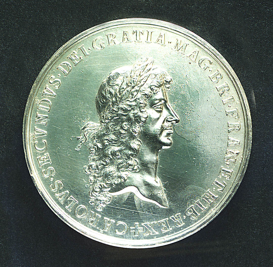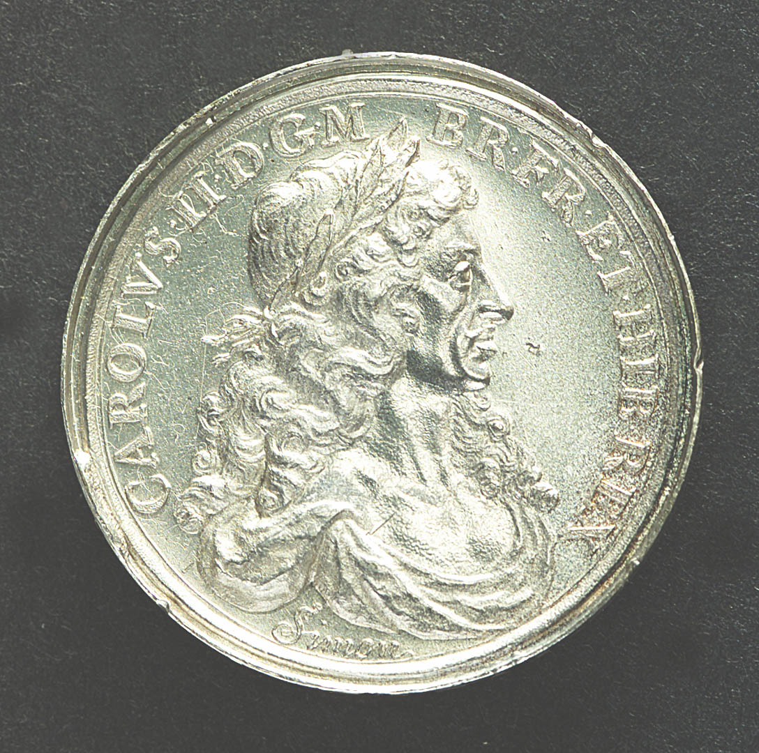 Medal commemorating the dominion of the sea. Medal commemorating the dominion of the sea. Obverse: Bust of King Charles II in along wig, laureate, in ornamental armour and mantle (left). Legend: 'CAROLVS . II . D . G : M : BR : FR : ET . H : REX.
