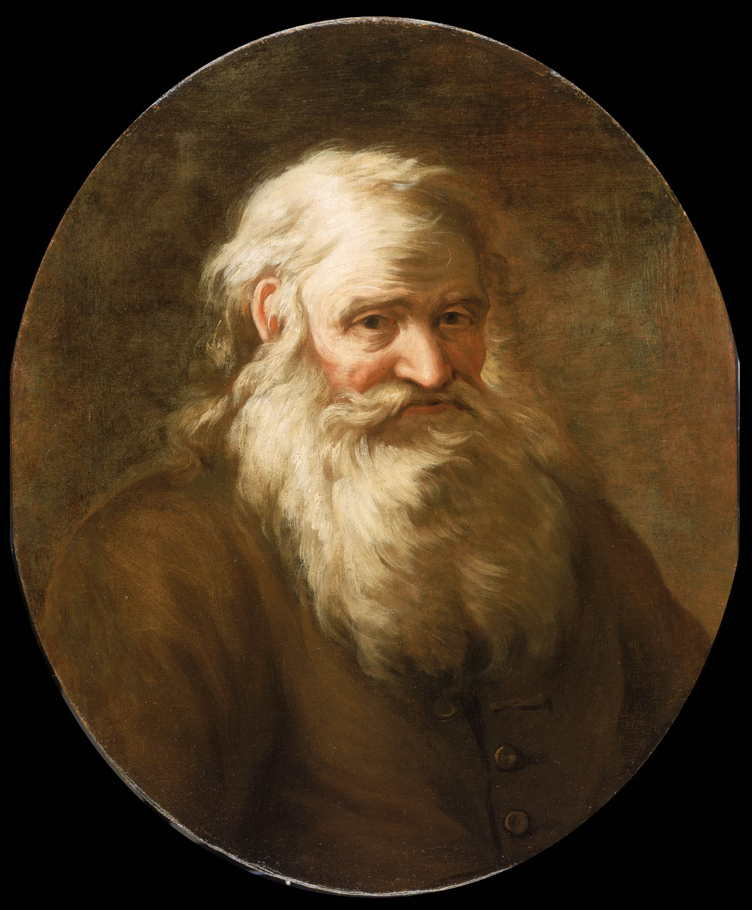 John Worley, 1624-1721. A head-and-shoulders portrait to right, in a natural-coloured coat and with a long white beard. This portrait was originally on a narrow oblong canvas but it is now in an oval with small additions on each side.