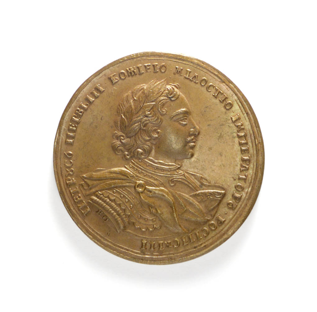 Medal commemorating the capture of three Swedish frigates, 1719. Medal commemorating the capture of three Swedish frigates, 1719. Obverse: Bust of Czar Peter I, laureate, in armour and cloak (right). Legend in Russian (Peter the First, Emperor of the Rus