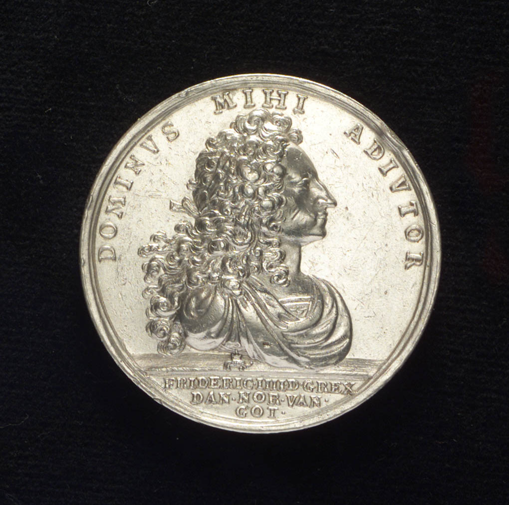 Medal commemorating the capture of Marstrand, 1719. Medal commemorating the capture of Marstrand, 1719. Obverse: Bust of King Frederick IV in a long wig and drapery resting on a shelf (right). Legend: 'DOMINVS MIHI ADIVTOR.' (The Lord is my Help