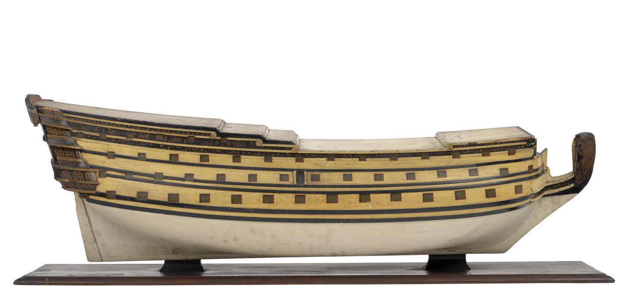 Britannia (1719); Warship; First rate; 100-guns. Scale: 1:48. A block model of the ‘Britannia’ (1719), a 100-gun three-decker, first-rate ship of the line. Scale: 1:48. A block model of the first rate 100-gun ship Britannia (1719) made entirel