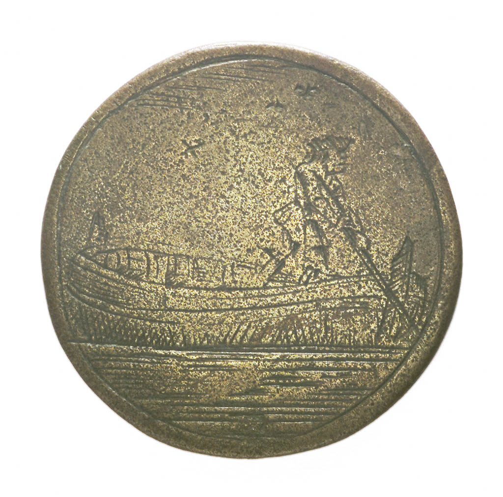 Lighterman's badge. Lighterman's badge. An engraved plate. Obverse: A boat with a man in the stern poling it. Reverse: Inscription, '1763 Den 20 decem Hans Sussemeil K.S.' (Kampen jetty). On a paddle, 'H.S.'