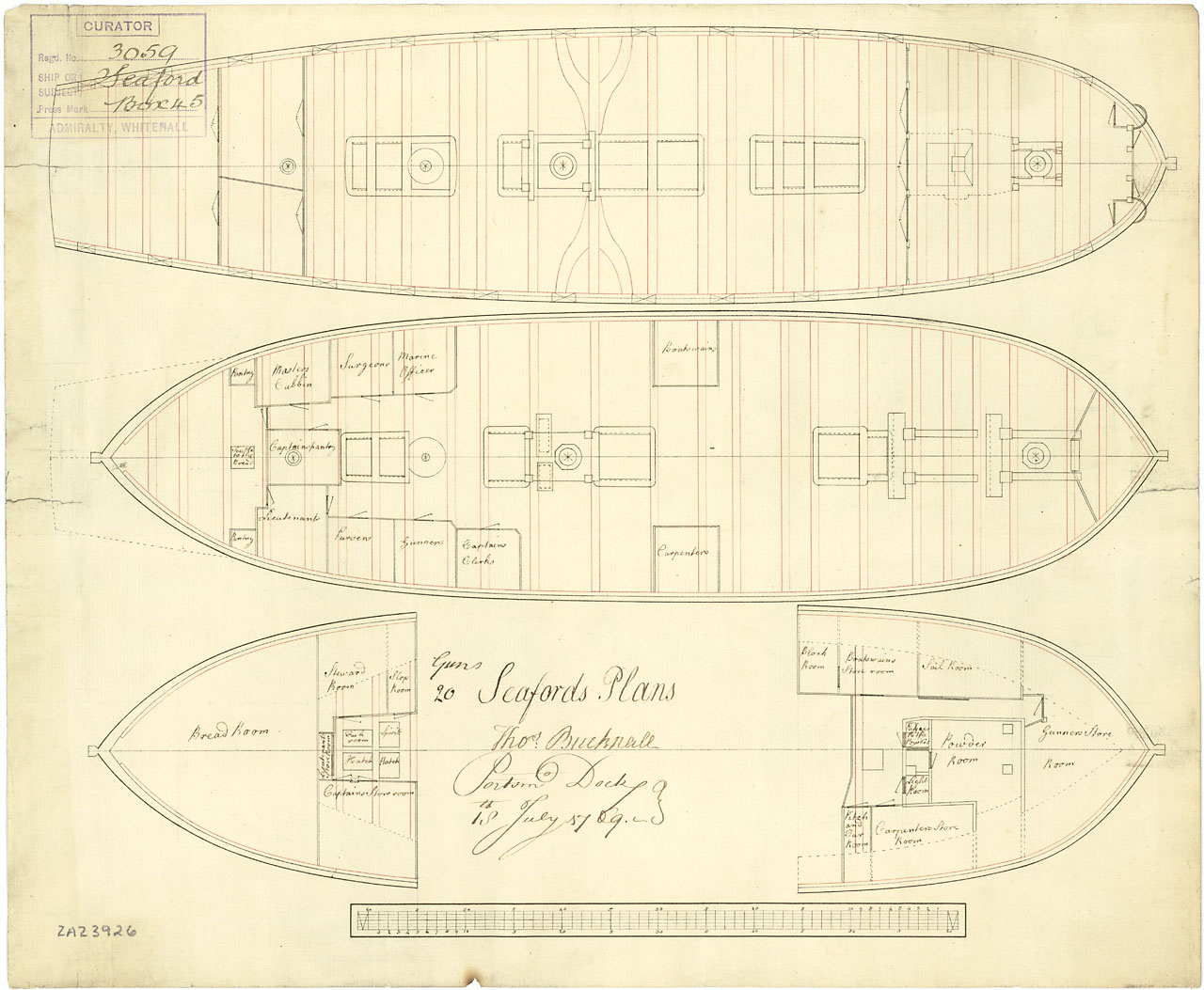 Signed by Thomas Bucknall [Master Shipwright, Portsmouth Dockyard, 1762-1772].