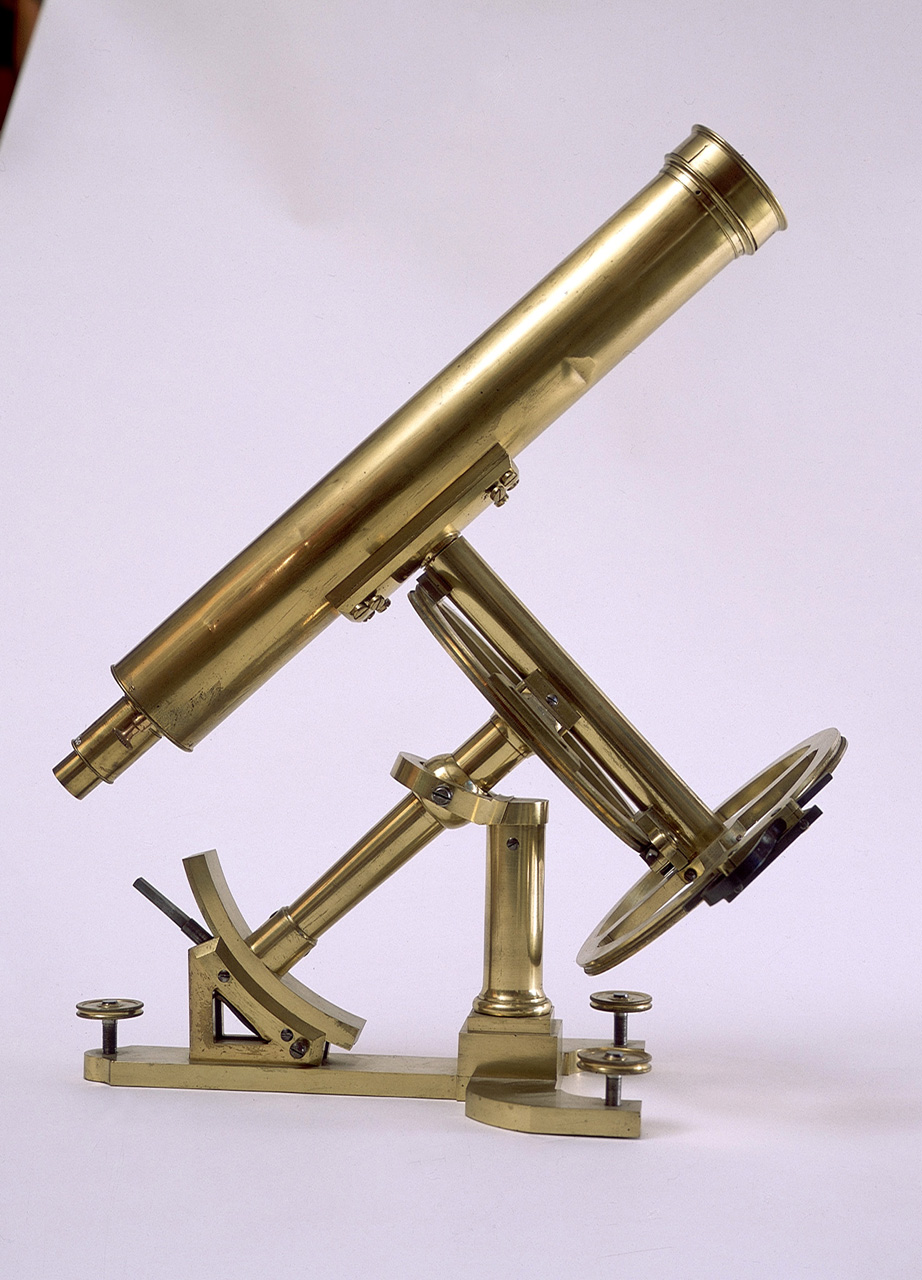 Refractor telescope. This is a brass refractor telescope by Peter Dollond on an equatorial mounting by Haupois. DOLLOND * LONDON is engraved at the eye end of the telescope; Haupois A PARIS 1787 is engraved on the index arm.