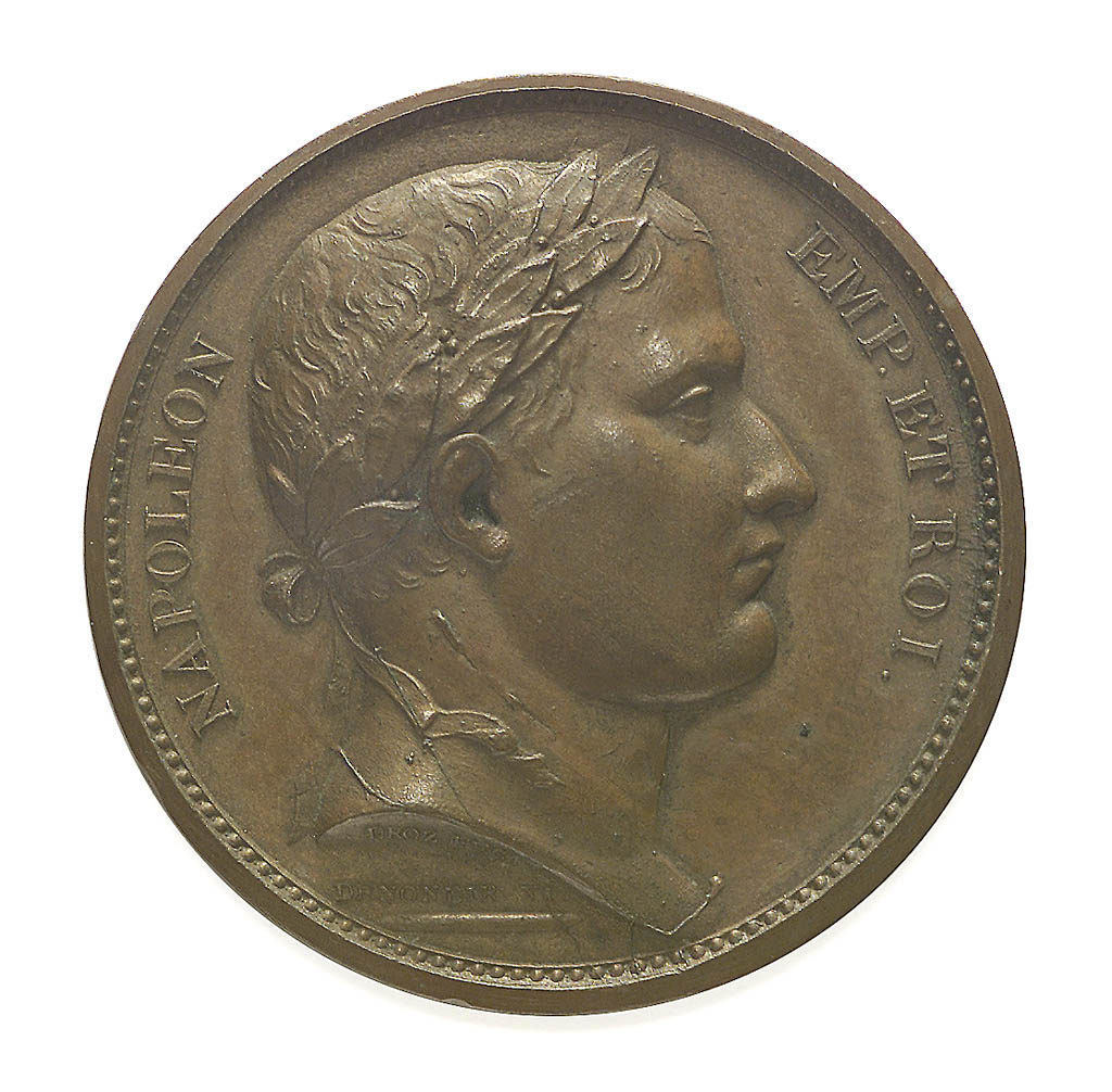 Medal commemorating the camp at Boulogne, and the planned invasion of England, 1804. Medal commemorating the camp at Boulogne, and the planned invasion of England, 1804. Obverse: The Emperor Napoleon I seated on a throne with two attendants standing behin