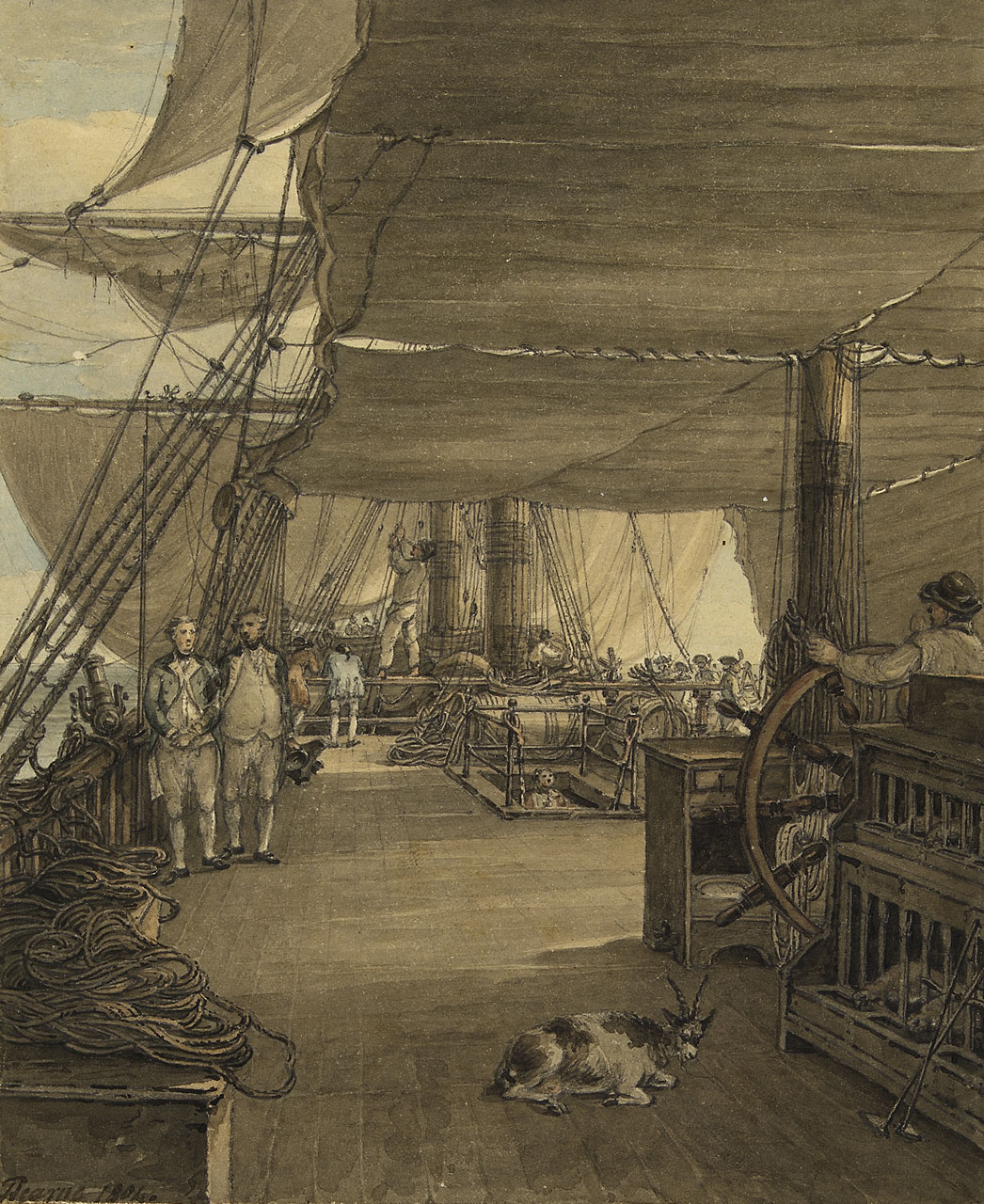 A scene on board His Majesty's ship 'Deal Castle', Captain J. Cumming, in a voyage from the West Indies in the year 1775. In 1771 the topographical artist Thomas Hearne accompanied Sir Ralph Payne, the recently appointed Governor-General of
