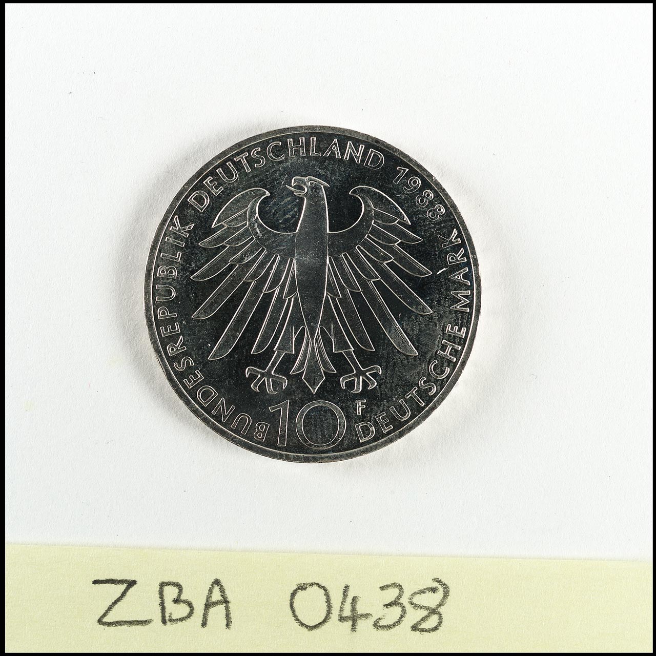 Ten Deutsche Mark. Ten Deutsche Marks commemorative silver coin marking the centenary of the death of Carl Zeiss in 1988 with a normal value of 10 Deutsche Marks.
