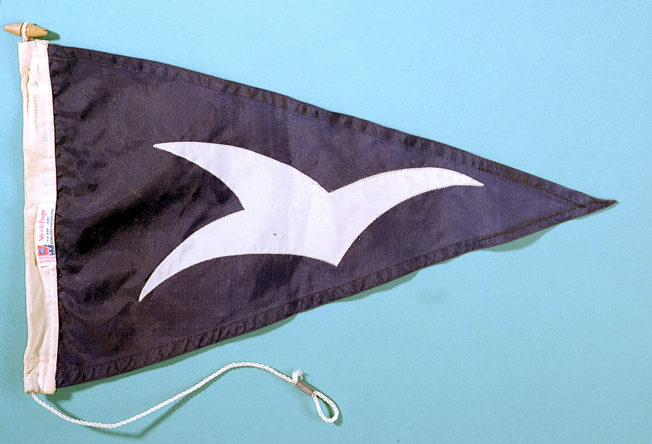 Burgee, Narrow Seas Club. Burgee, Narrow Seas Club, founded in 1932 as an offshoot of the Little Ships Club. Dark blue synthetic bunting with a machine-sewn white motif of a stylised bird.