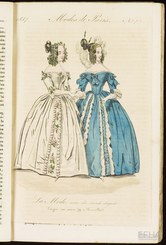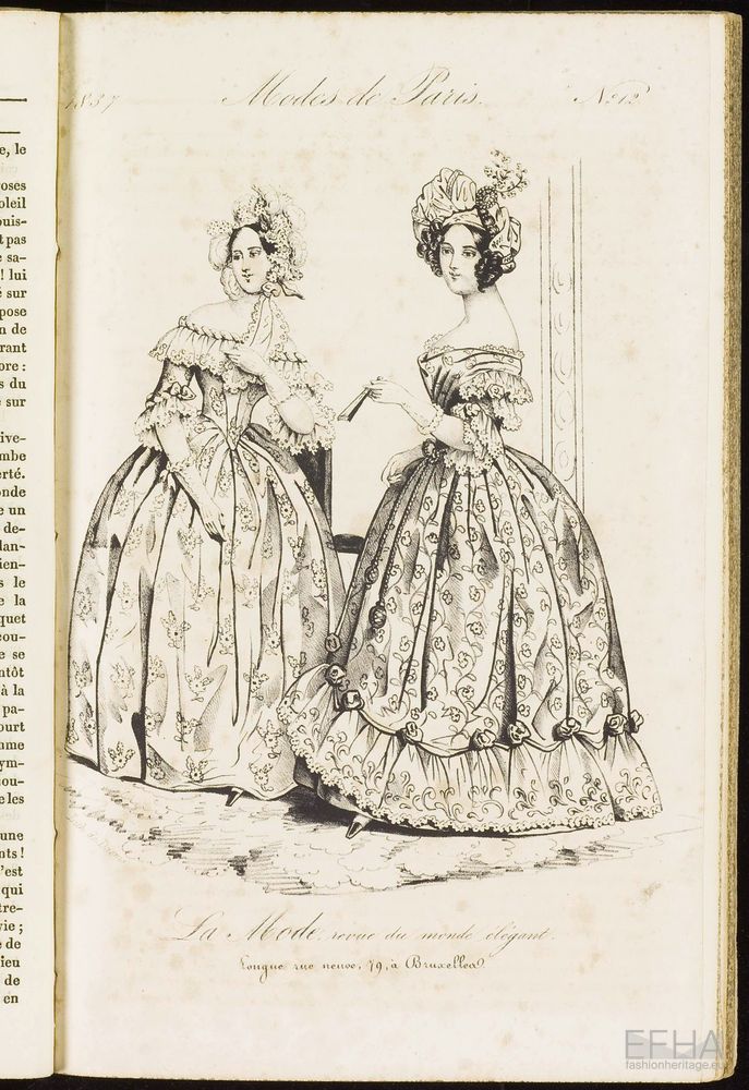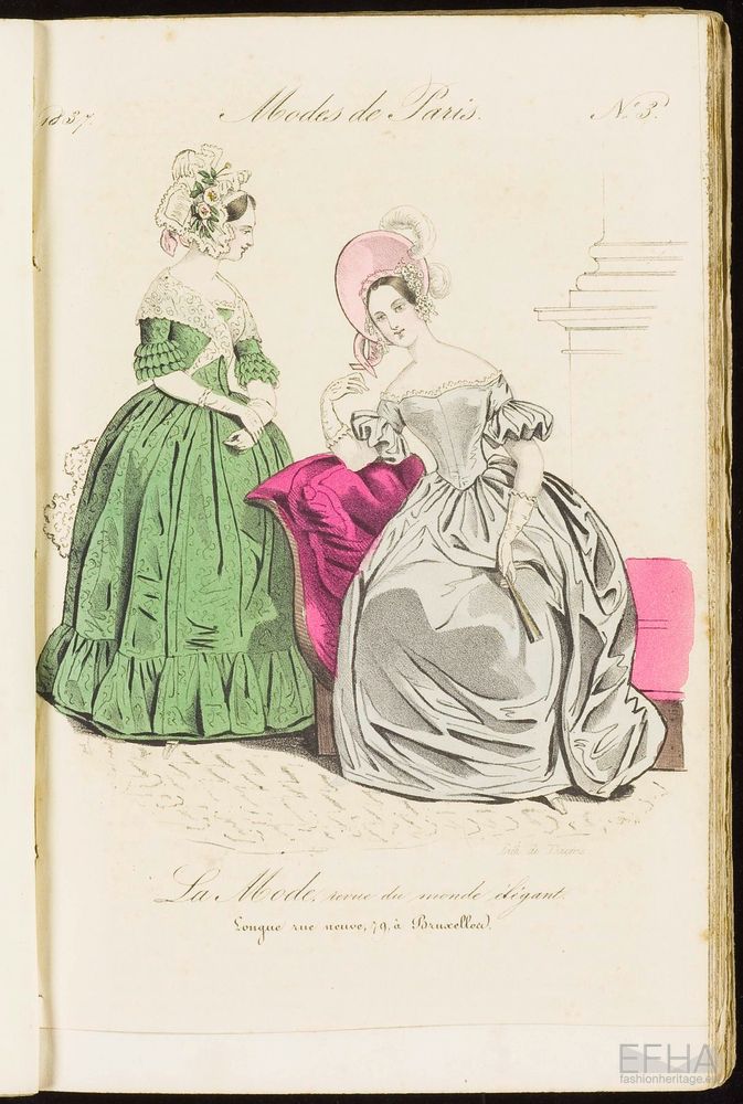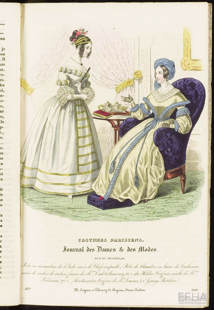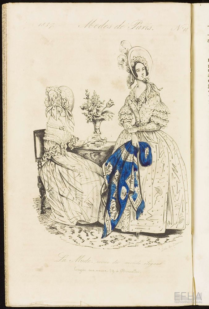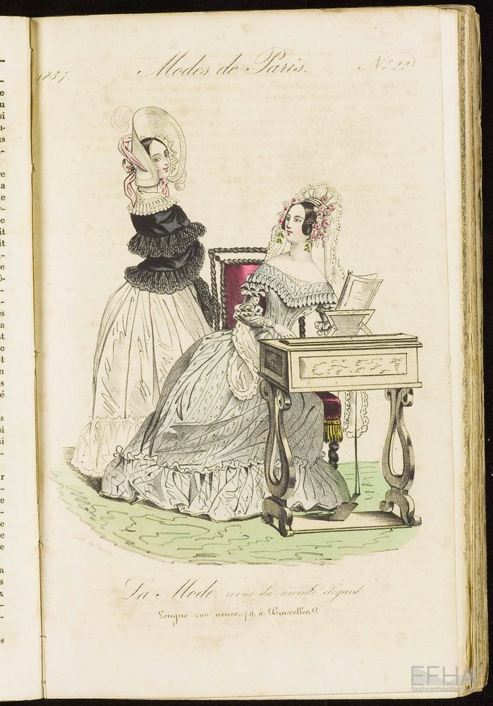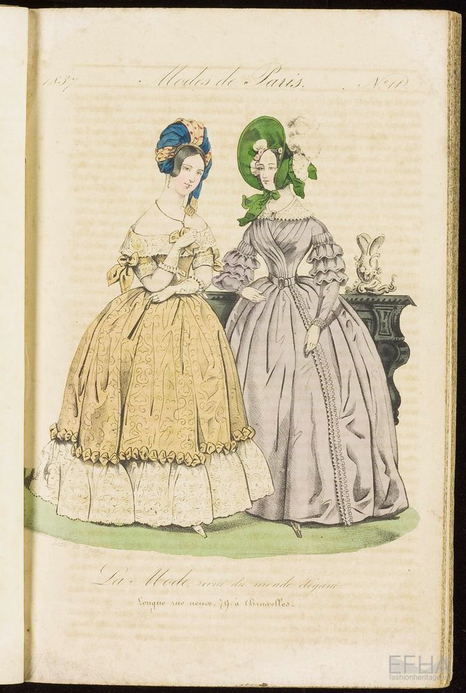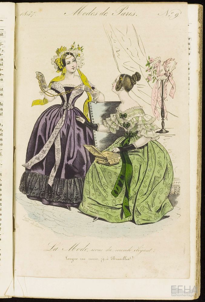 Modeprent (in kleur) uit 'Le Follet Courier des Salons' 1837-02-24