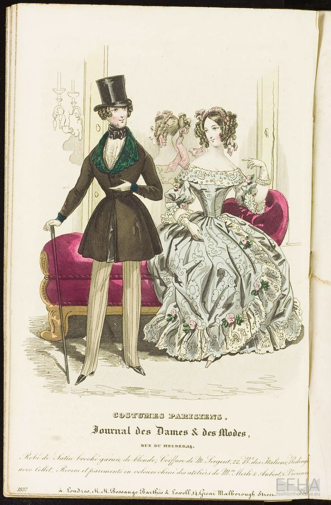 Modeprent (in kleur) uit 'Le Follet Courier des Salons' 1837-04-01