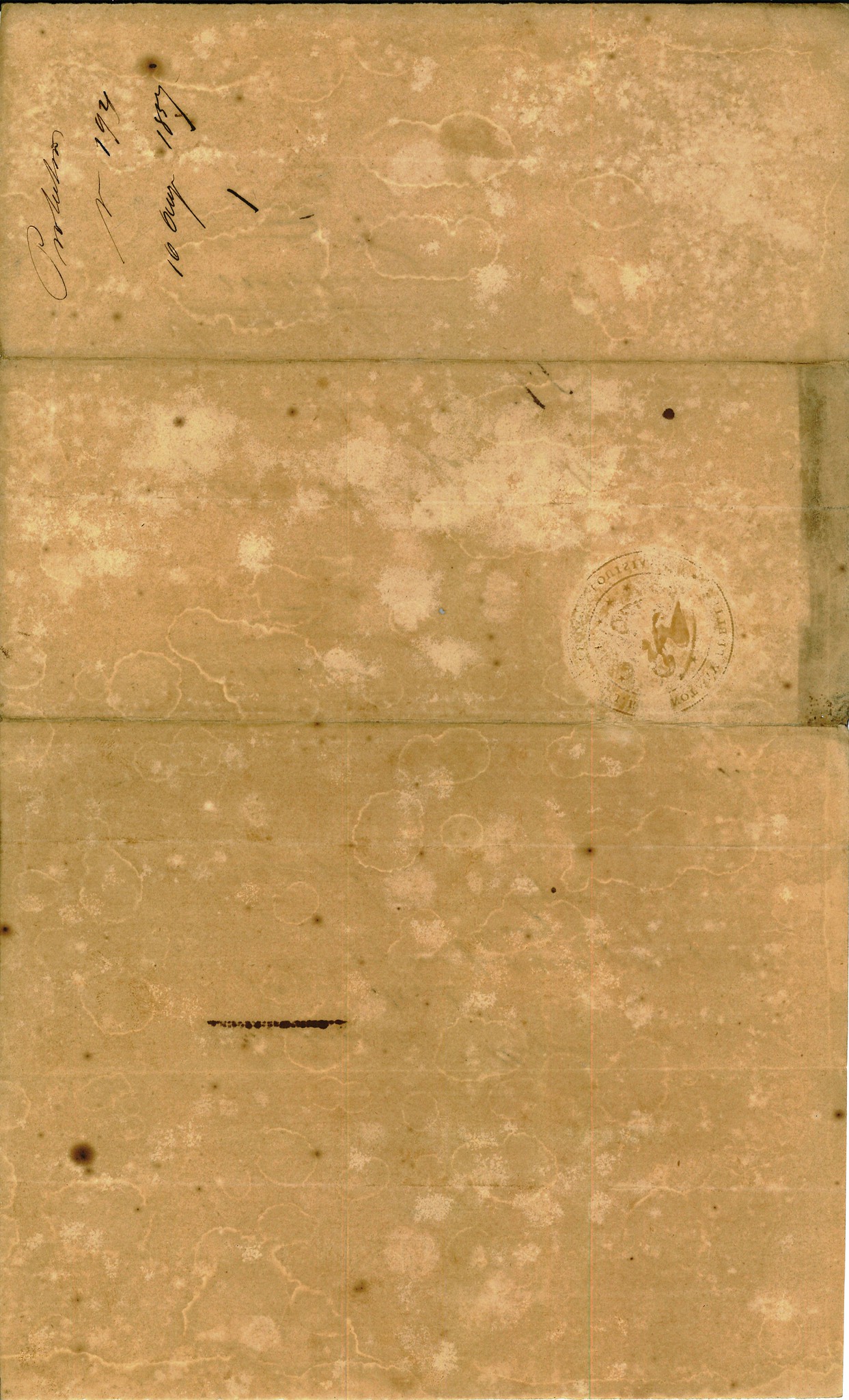 Notary Form with Seal for John Karl, 08/10/1857 (Reverse)